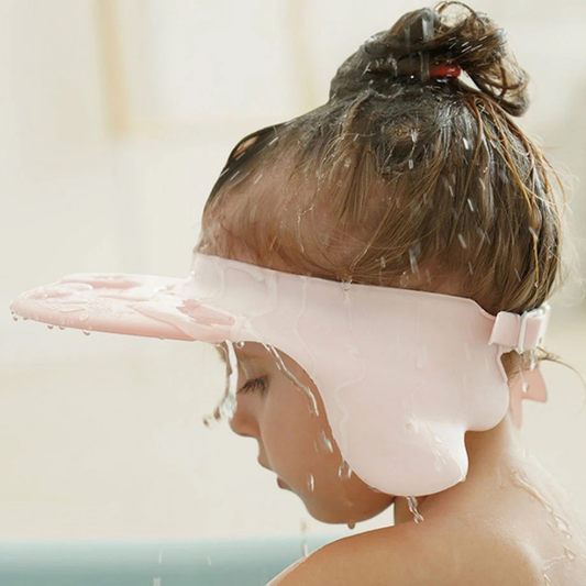 Baby shampoo shower cap with adjustable fit and eye & ear protection